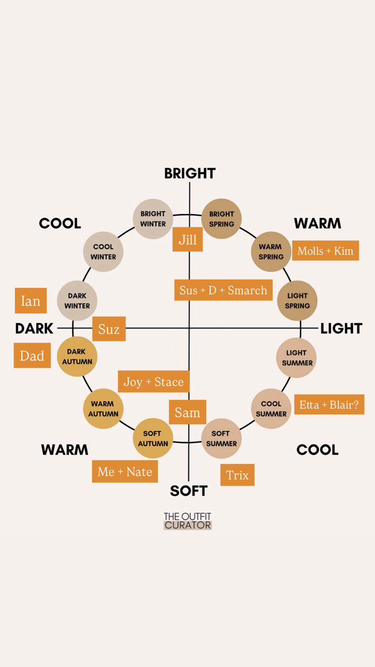 My main Instagram is @stephanie.a.meyer but I have a second account, purely for creative fun, called @softautumnglow. There I post (mostly in stories) about seasonal color theory as it pertains to clothes and interiors. Do you know your color season? My stepmom gifted all of us having our colors analyzed when we graduated from high school. Such a great gift! The field has changed a lot since its early days - initially there were just four seasons - but now there are 12 (some even use 16 although I don’t think that’s necessary). My season is Soft Autumn (as you can tell by my IG handle) and I find it incredibly flattering, soothing, and cohesive-feeling to dress in soft autumn colors and create my home in them too. I super nerd out about it on Instagram. I offer my opinion about celebrities, I rave about best hair colors, I tell my friends/family what season I think they’re in, I share interior palettes that resonate with the seasons. It’s an absolute blast, so please do join me over there.